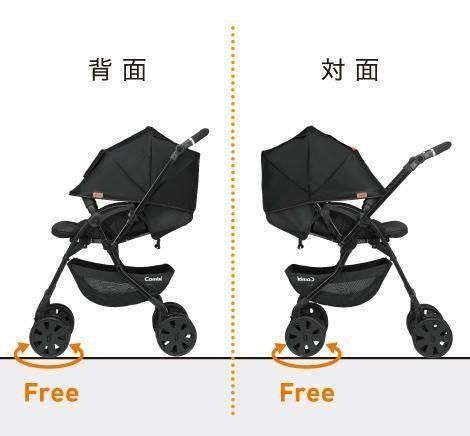 進行方向に対して、前輪のキャスターが自動で回転し、行きたい方向へ自由自在。