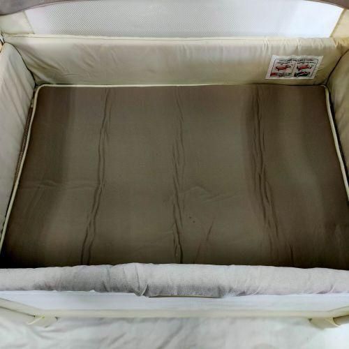通気性の高い「シルキーエアー」マットを採用しており、体圧を分散させ、赤ちゃんの体にかかる負担を軽減します。さらに、このマットは取り外して洗濯機で洗えるため、赤ちゃんのデリケートな肌にもやさしいです(手洗いコースも利用可能)。周囲にはやわらかなメッシュガードがあり、元気な赤ちゃんが手足を動かしても安心です。ただし、お肌の弱いお子さまの場合はミトンや靴下の着用をおすすめします。このベビーベッドは折りたたみが簡単で、収納袋も付属していますので、帰省や旅行先でも活用できます。また、前わくを上下できるため、お子様のおむつ替えや着替えにも便利です。キャスターが付いているので、おそうじの際も移動がラクです。