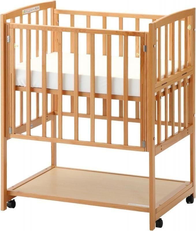 お部屋からお部屋への移動が出来るコンパクトサイズで、楽な姿勢でお世話が可能なハイタイプ!ツーオープンでお世話楽々のベビーベッドです!