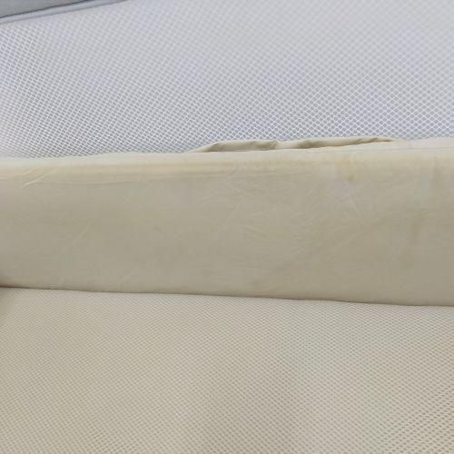 グレーとホワイトを基調とした部屋に馴染むデザインとコンパクトに折りたためる構造を持ちながら、PSC・SGマークを取得した安心・安全なベビーベッドです。 赤ちゃんが快適にねむれるように、通気性のある「やわらかマット」と「安心メッシュガード」を採用。 そして、カンタンに折りたたんで持ち運ぶことができるので、帰省先や旅行先でも使えて便利。 もちろん、ふだんのおむつ替えやお掃除のときなどいろんなシーンで大活躍。大きくなったらベビーサークルとしても使えます。小さな体なのにたくさん汗をかく赤ちゃんのために、通気性の良い素材を採用。体圧分散をしてくれるマットなので快適な寝心地です。メッシュ素材の壁で囲うことによって、赤ちゃんや上のお子様が手足をぶつけて怪我をしないようにしています。